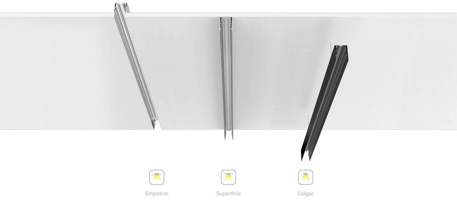 Die Struktur der Leuchten ist eine der robustesten auf dem Markt und begünstigt das physische Aussehen, aber auch die Widerstandsfähigkeit und Wärmeableitung. Diese Beschaffenheit ermöglicht es, die Leuchten mit einem Durchgangskabelsystem zu realisieren, was die Zusammenschaltung ohne sichtbare Verdrahtung begünstigt und erleichtert.